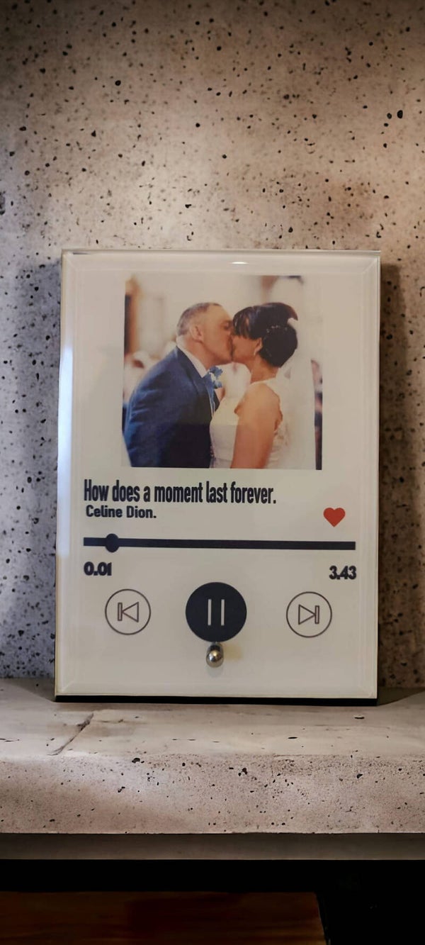 Introducing the perfect gift or personal keepsake: our customizable Photo with Music Code! Available in both A4 and A3 photo paper sizes, this unique piece blends cherished memories with the magic of music. Each photo is also available in a glass frame with a sturdy stand measuring 17x23 cm, ideal for any desk or shelf. Alternatively, opt for our stunning light-up acrylic stand with a radiant base that adds a touch of modern elegance to any room. Simply scan the music code with your smartphone to relive your favourite tunes while admiring your special photo. This captivating combination of visuals and sound creates a truly unforgettable experience. Perfect for birthdays, anniversaries, or just because—order yours today and turn memories into melodies!