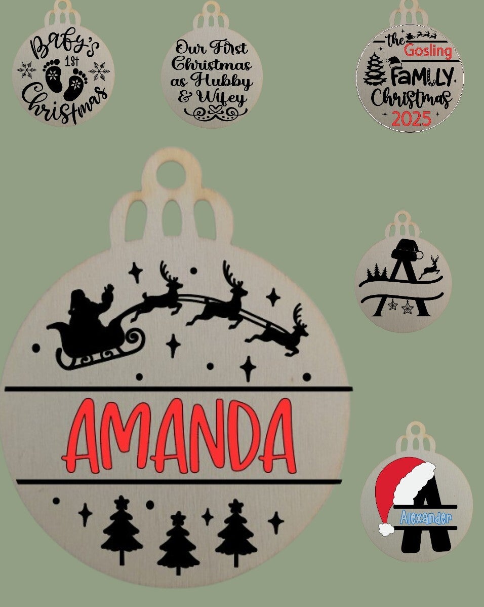 Personalised wooden bauble- various designs