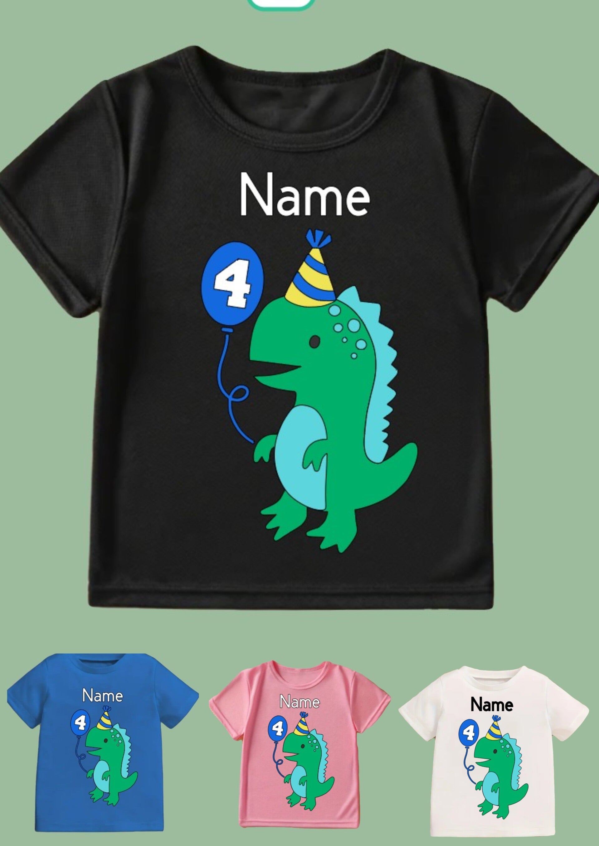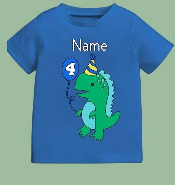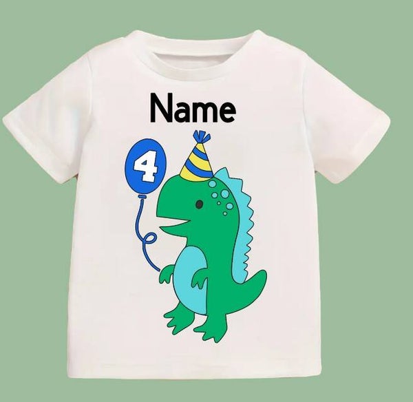 Features a dinosaur holding a balloon to add you choice of number in.