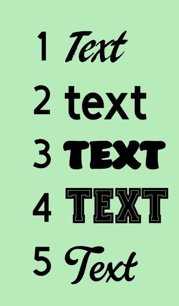 Add own text and choose one of the fonts and colour